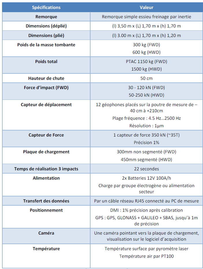 Le déflectomètre FWD Heavydyn est une remorque de mesure de déflexion à masse tombante (Falling Weight Deflectometer) sous charge dynamique permettant d’obtenir la déflexion équivalente à la mesure à la poutre de Benkelman et à l’aide de logiciel de retrocalcul de type Alizé LCPC, les modules élastiques des couches de chaussées.